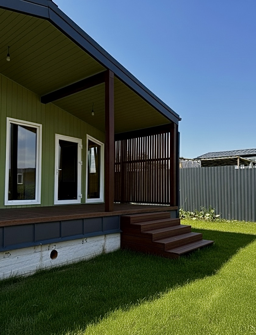 Фундамент: Свайно-ростверковый фундамент имеет значительный срок службы и представляет собой конструкцию из свай, заглубленных в грунт ниже глубины промерзания почвы, и соединенных вверху при помощи металлической или бетонной ленты (ростверка).