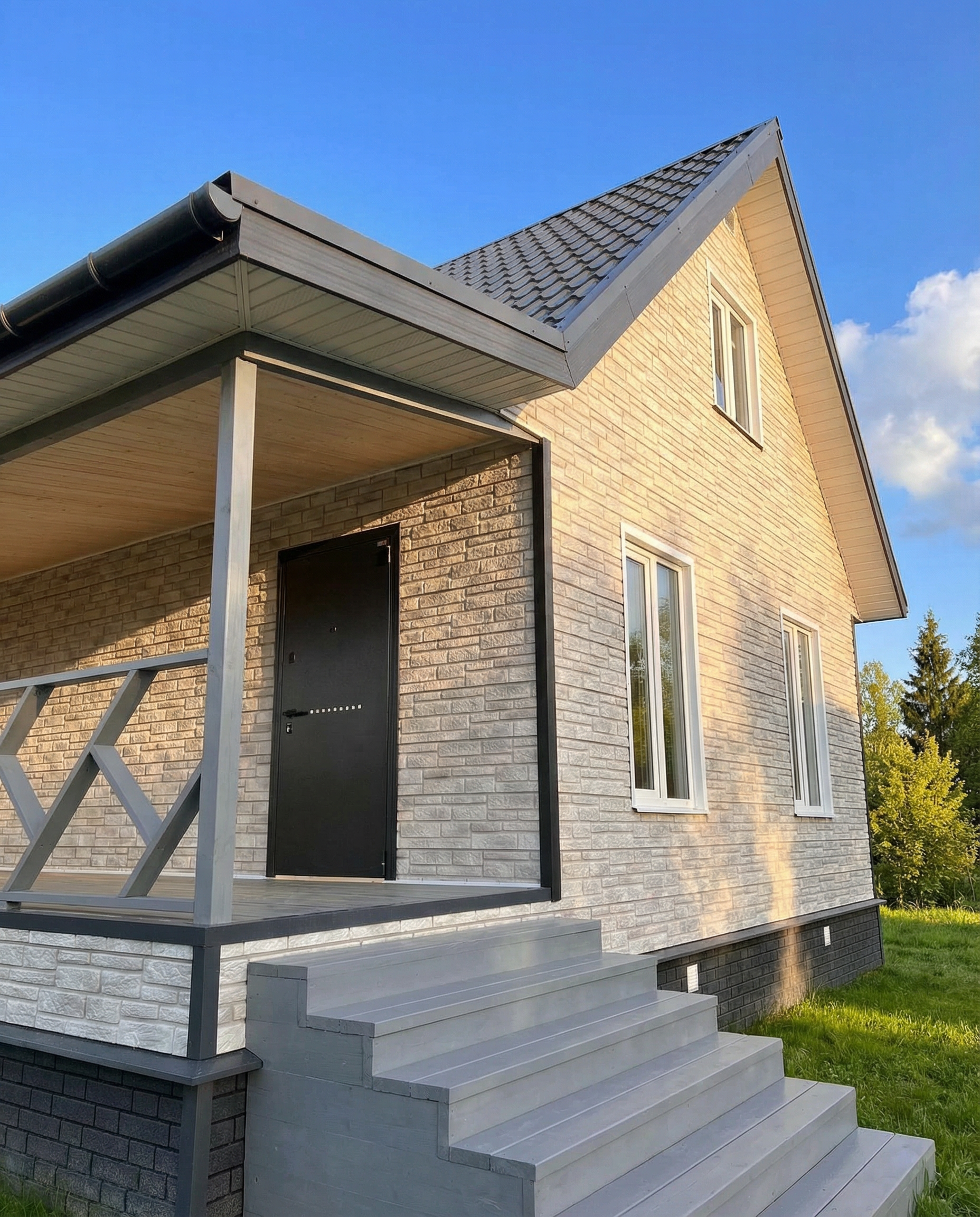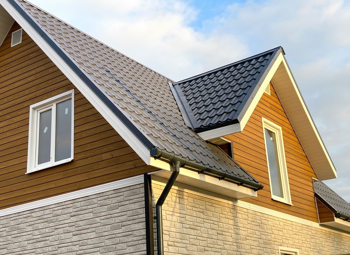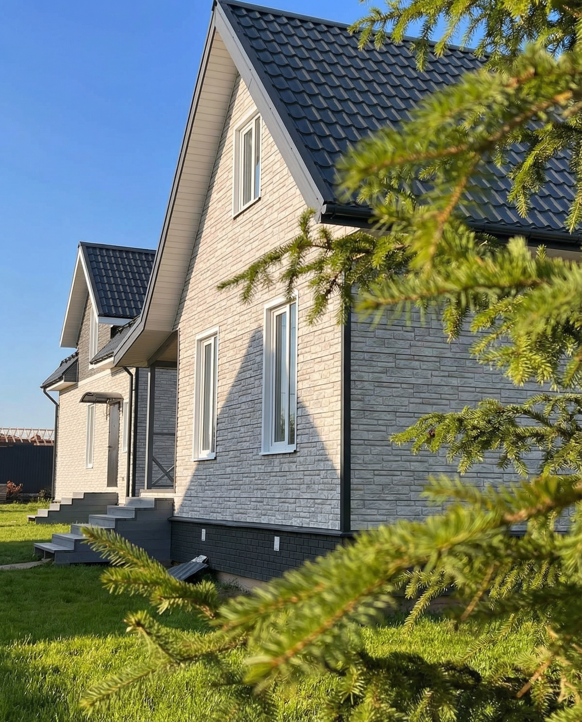 Кровля: Металлочерепица имеет хорошие эксплуатационные характеристики и может использоваться на крышах различных конфигураций. Соблюдение технологии укладки позволяет создавать долговечную кровлю, обеспечивающую высокий уровень защиты подкровельного пространства и помещений от ветра, холода и осадков.
